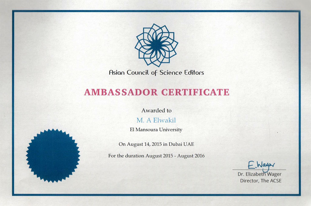 - EL-Sherif A.G. and M.A. Elwakil. 1991. Interaction between Meloidogyne incognita and Agrobacterium tumefaciens or Fusarium oxysporum f.sp. lycopersici on tomato. J. Nematology 23: 239-242. (IF: 0.52).