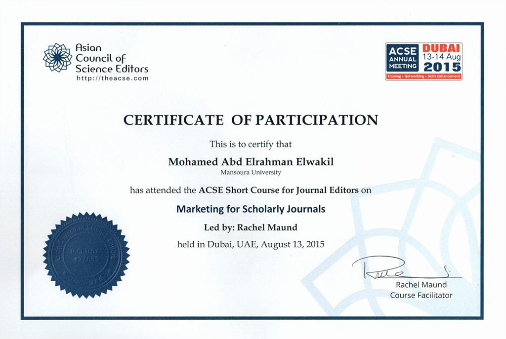 - Marouah I. Atta and Mohamed A. Elwakil, 1993. Seed-Bourne fungi of cotton and rice in Egypt with special reference to germination. Proceedings of 1st ISTA, Plant Disease Committee, Symposium on Seed Health Testing, Ottawa, Canada, August 9-11, 1993.
