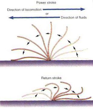 فإنها ُتحدث موجات لدفع الخلية في اتجاه معين كما في الشكل.